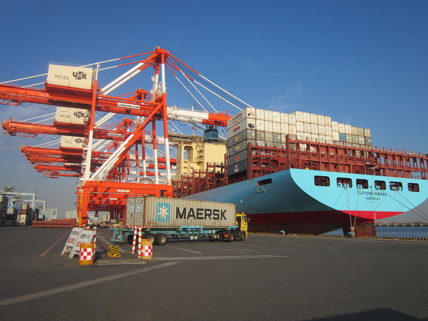 南本牧ふ頭(横浜港)における荷役状況(神奈川県横浜市)