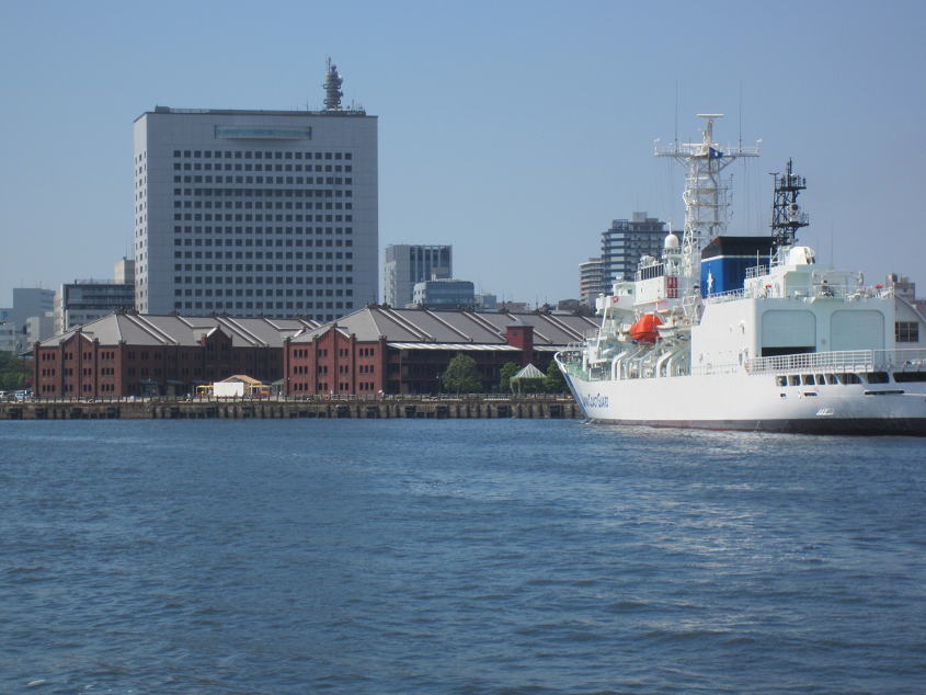 海上から新港ふ頭と赤レンガ倉庫を臨む(神奈川県横浜市)