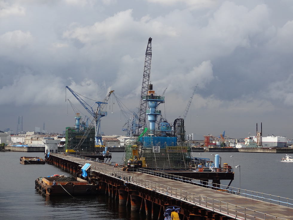 鹿島港(茨城県)ケーソンドックから25mケーソン引出状況