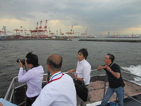 ○横浜海事記者クラブ(主要新聞、テレビ所属)の記者の方々が、横浜港南本牧ふ頭の工事現場や、海上から横浜港を見学しました。港湾行政への理解を深めて頂きました。