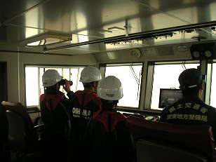 ○横浜市内の中学校の新聞委員会の生徒さんたちが、横浜港臨港道路の工事現場や、海上から横浜港を見学しました。