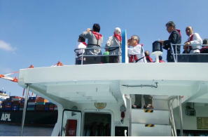 ○箱根町立仙石原小学校の皆様が横浜港を視察されました。非常に驚きと興味をもっている様子でした。