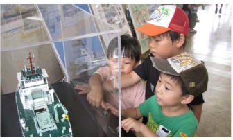 ○みなと木更津うみ祭りが開催され、千葉港湾事務所において、展示ブースの出展、清掃兼油回収船「べいくりん」の乗船体験、船内見学を実施しました。