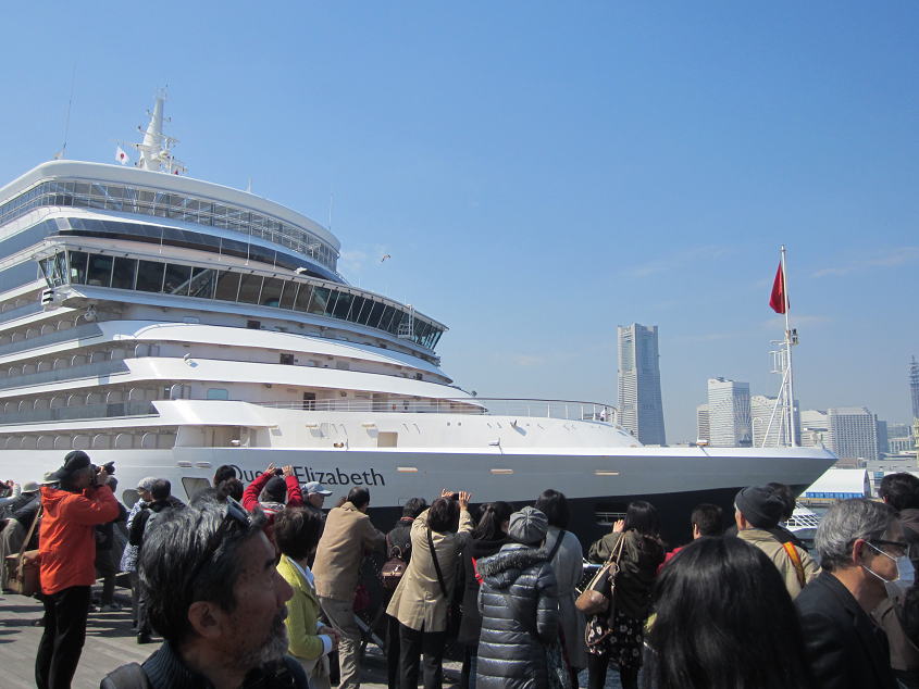 大さん橋国際旅客船ターミナル(横浜港)に着いたクイーンエリザベス2世(神奈川県横浜市)