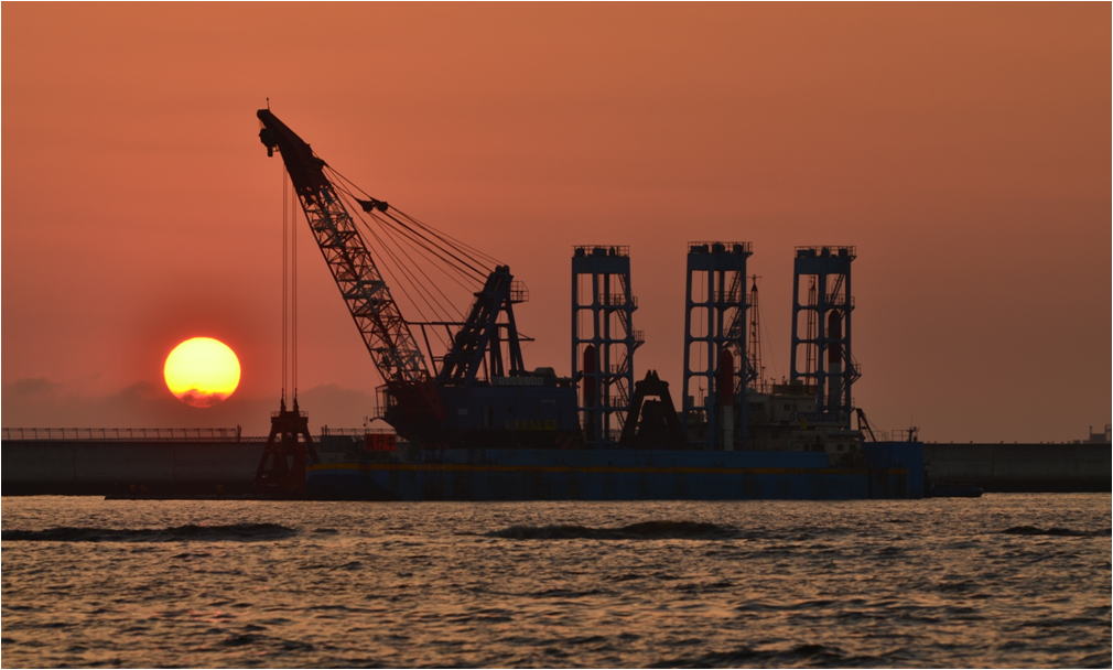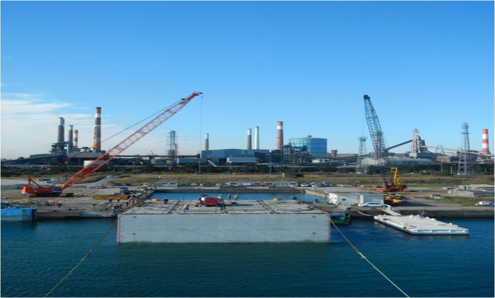 鹿島港(茨城県)ケーソンドックから25mケーソン引出状況