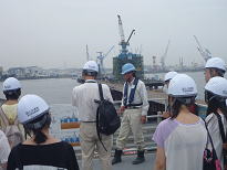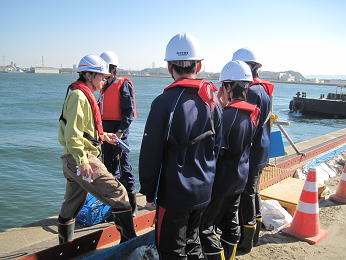 ○横浜市内の中学校の新聞委員会の生徒さんたちが、横浜港臨港道路の工事現場や、海上から横浜港を見学しました。