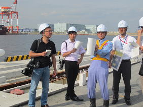 ○横浜海事記者クラブ(主要新聞、テレビ所属)の記者の方々が、横浜港南本牧ふ頭の工事現場や、海上から横浜港を見学しました。港湾行政への理解を深めて頂きました。