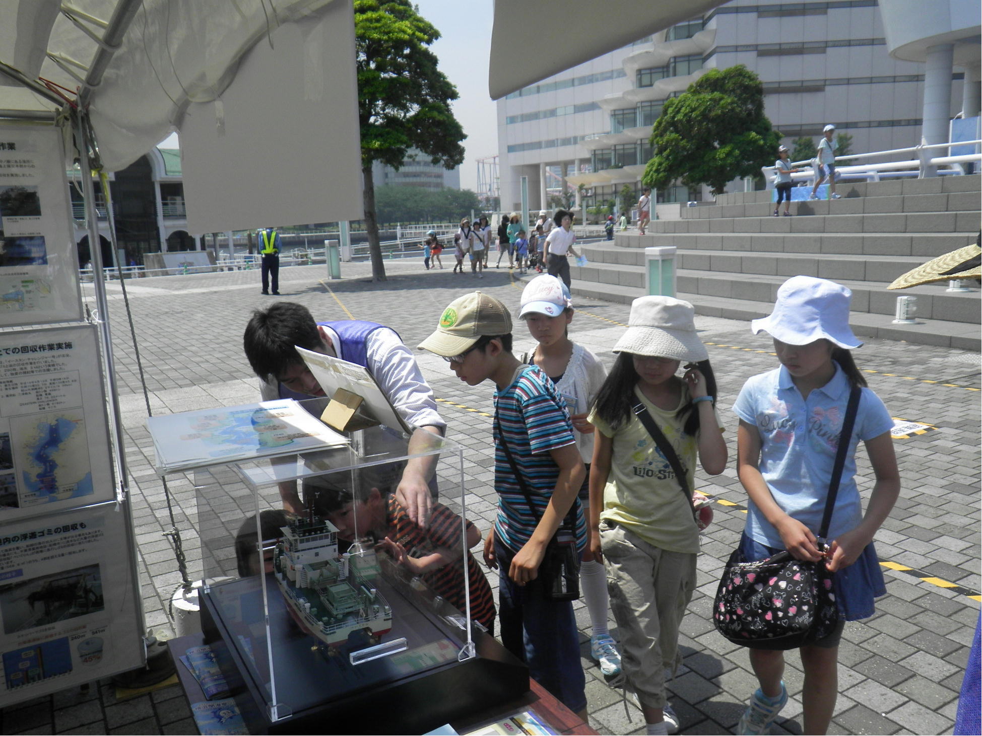 ○みなと木更津うみ祭りが開催され、千葉港湾事務所において、展示ブースの出展、清掃兼油回収船「べいくりん」の乗船体験、船内見学を実施しました。